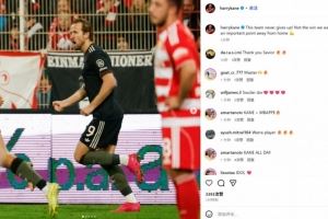 凯恩也在赛后通过社媒晒出自己进球后的庆祝照,并配文:“这支球队永不放弃!没拿到我们想要的胜利,但从客场带走重要一分”。